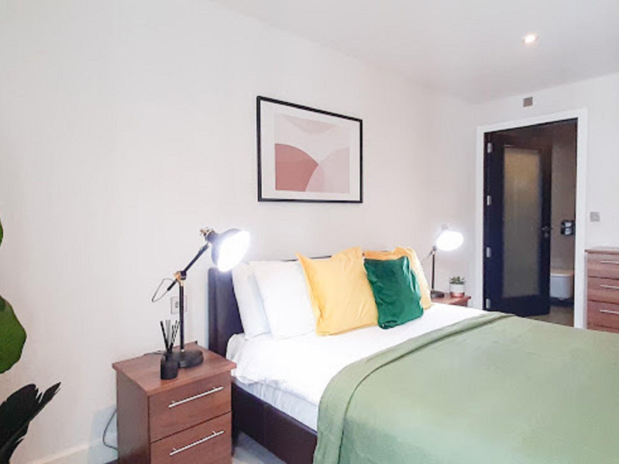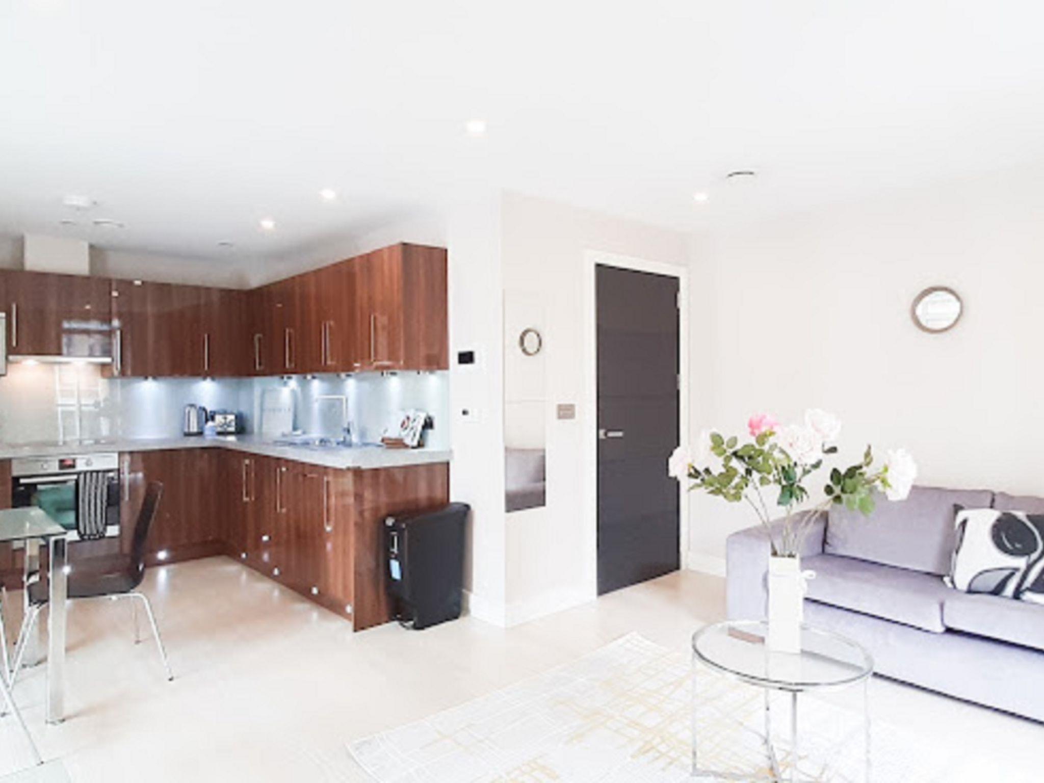 Modern apartment block "Friends Street". In the centre of London, in a central position. In the complex: WiFi, lift, central heating system, laundry (extra). Room cleaning weekly (included). Grocery, bar 100 m, bus stop "Penton Street" 650 m, railway station "Old Street" 2 km, underground station "Old Street" 2 km. Nearby attractions: Barbican Cultural Centre 3 km, St. Paul‘s Cathedral / Tate Modern 3 km, Buckingham Palace 6 km, Piccadilly Circus 6 km, Tower of London & London Bridge 5 km, London Eye 3 km. Please note: suitable for families, baby equipment on request (extra), childminding (extra). The photograph shows a typical example.