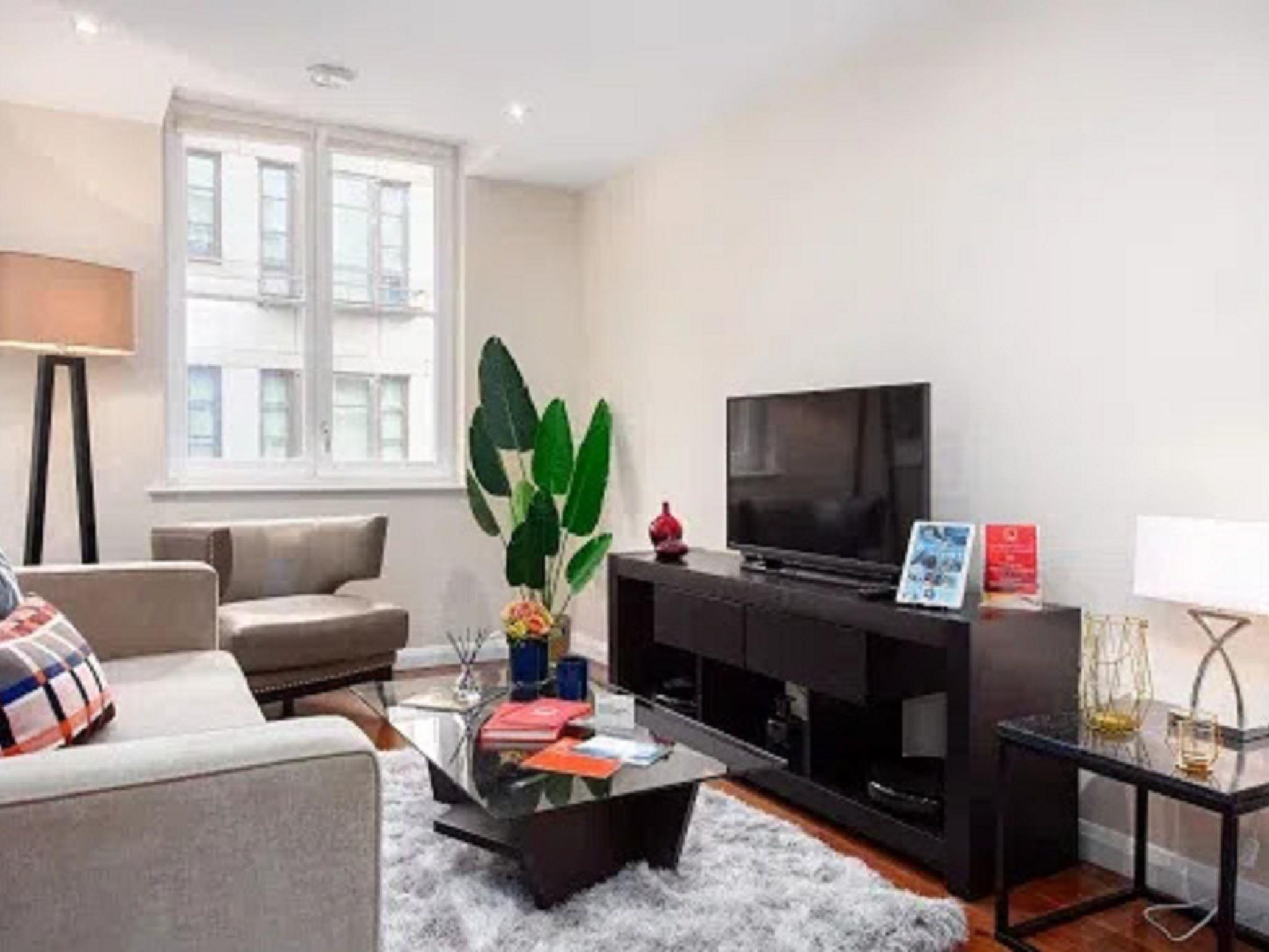 "Chancery Lane, Central London", 2-room apartment 40 m2. Modern and stylish furnishings: open living/dining room with dining table and TV (flat screen). 1 double bedroom with 1 double bed and bath/shower/WC. Open kitchen (4 hot plates, oven, dishwasher, toaster, kettle, freezer, combination microwave). Heating. Facilities: washing machine, dryer, baby cot for up to 2 year olds (extra), hair dryer. Internet (WiFi, free). Please note: suitable for families. Non-smoking house. TV only EN. Smoke alarm, fire extinguisher. The property is one of a type of property or apartment.