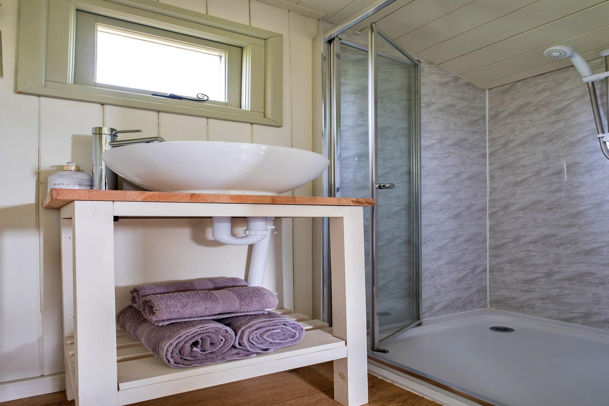 This luxurious glamping retreat offers a cozy, intimate stay in a beautifully located shepherd's hut. Ideal for two, it features a comfortable double bed with bed linen, an electric wood burner, and a small kitchen area equipped with a Belfast sink, fridge, microwave/combi oven, and a plug-in induction hob. The space is well-equipped with a TV, free Wi-Fi, and a private shower room with heated towel rail and towels, providing all the comforts of home in a picturesque setting. Nestled in an idyllic countryside location near Bridgnorth, guests can unwind on the private outdoor seating area while enjoying stunning views of the surrounding fields, woodland, and water. The tranquil environment is perfect for nature walks or simply relaxing in the serene surroundings. The accommodation also includes an outdoor BBQ, ideal for alfresco dining under the open sky. Convenient amenities such as parking, internet access, and heating are included, ensuring a comfortable stay. The shepherd’s hut offers the perfect getaway for couples looking to escape the hustle and bustle and experience the beauty of nature in a luxurious, rustic setting.