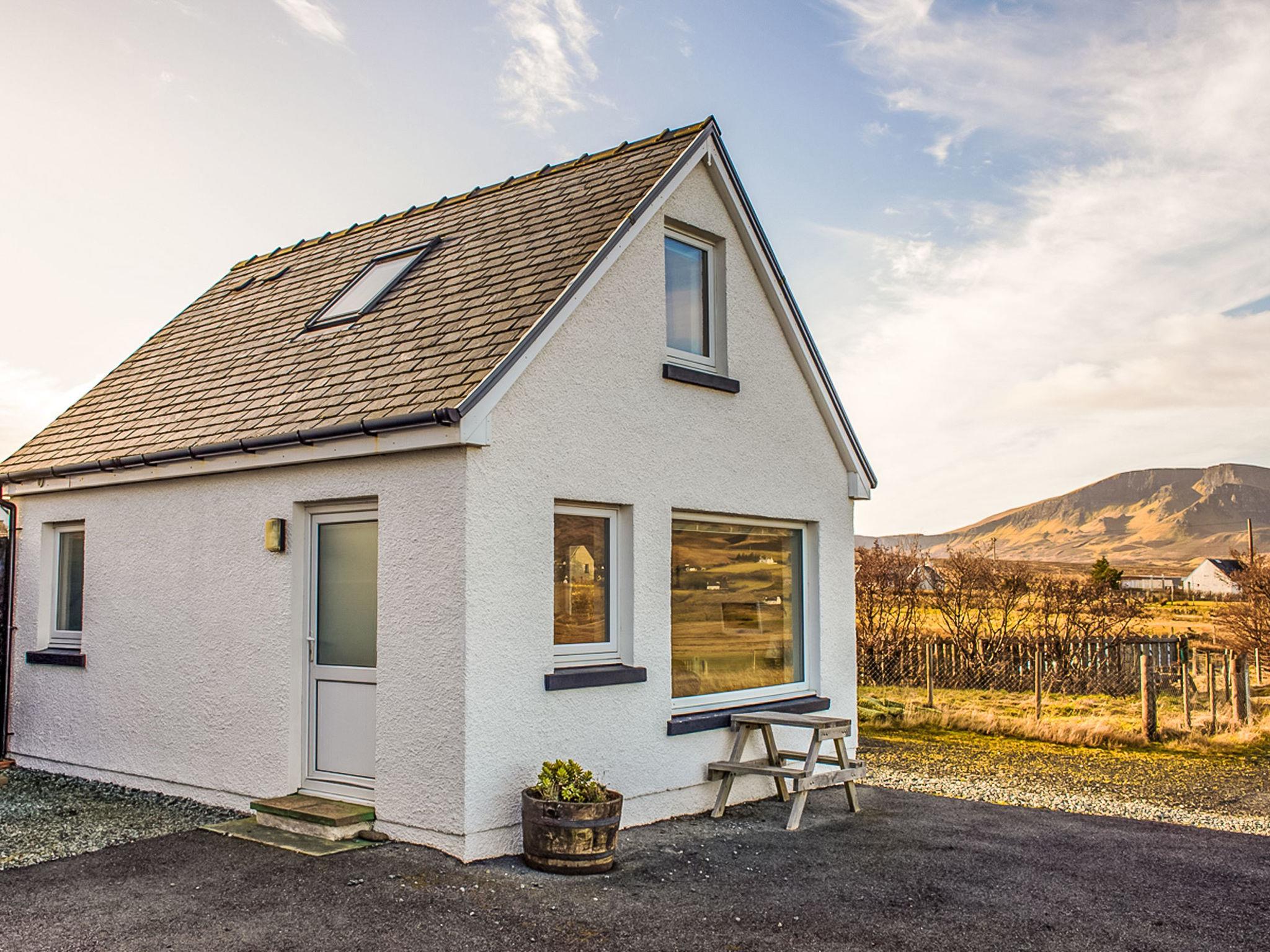 Very small, beautiful, cosy chalet "Solas Alainn Chalet". In the district Staffin, in a secluded, quiet position, 1 km from the sea. For shared use: terraced garden (fenced). In the house: internet access, WiFi, central heating system, laundry, washing machine. Parking. Shop 1 km, grocery 1 km, supermarket 1 km, restaurant 1 km, bar 6 km, bus stop "junction" 5 km. Nearby attractions: Quirrang 5 km, Corran beach 2 km, Mealt Falls 5 km, The Old Man of Storr 18 km. Please note: car recommended. Baby equipment on request. Additional accommodations can be booked. Property ref. GB8826.352.1 is situated on the same property.