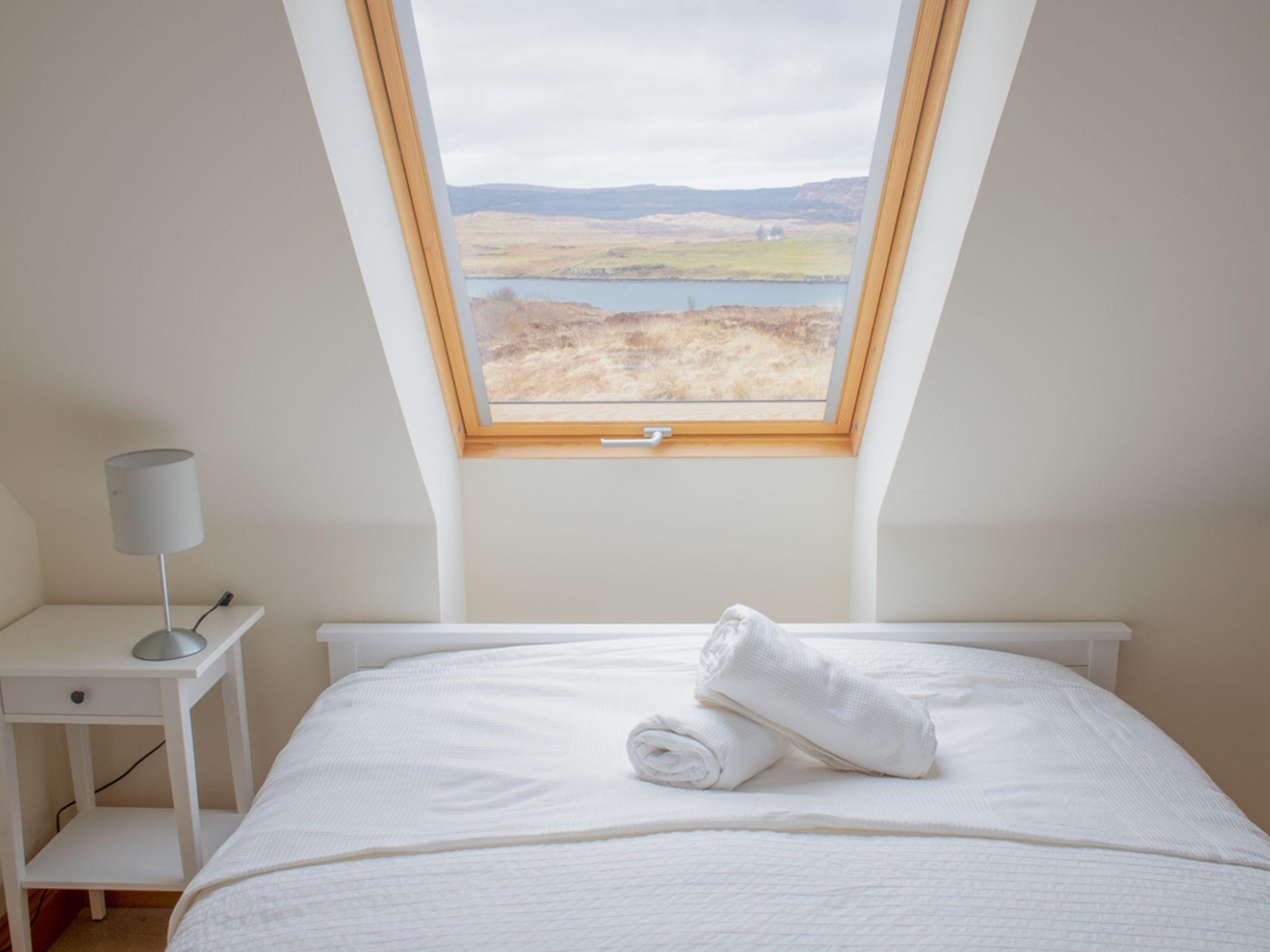 Very modern, beautiful, comfortable chalet "Solace". Private: garden (fenced). In the house: internet access, WiFi, central heating system, laundry, washing machine, tumble dryer. Parking (for 3 cars) at the house. Shop 16 km, grocery 16 km, restaurant 3 km, bar 16 km, café 16 km, bus stop "Church" 500 m. Nearby attractions: Dunvegan Castle & Gardens 16 km, The Fairy Glen 30 km, Skye Museum of Island Life 37 km. Please note: car recommended.