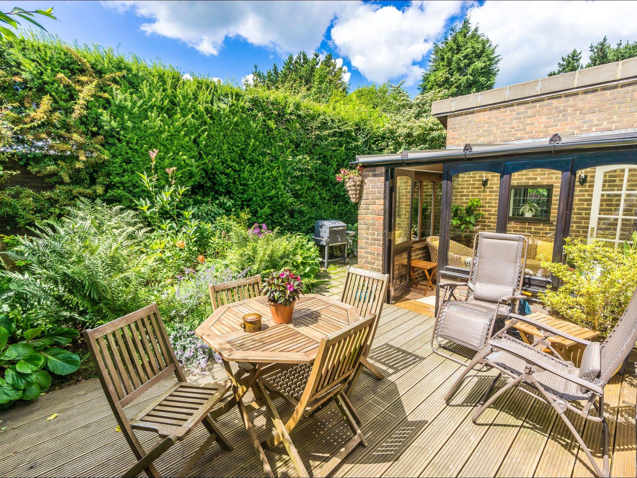 The living room opens into your private conservatory, where you can make yourselves comfortable at the table with chairs and enjoy leisurely grill evenings.