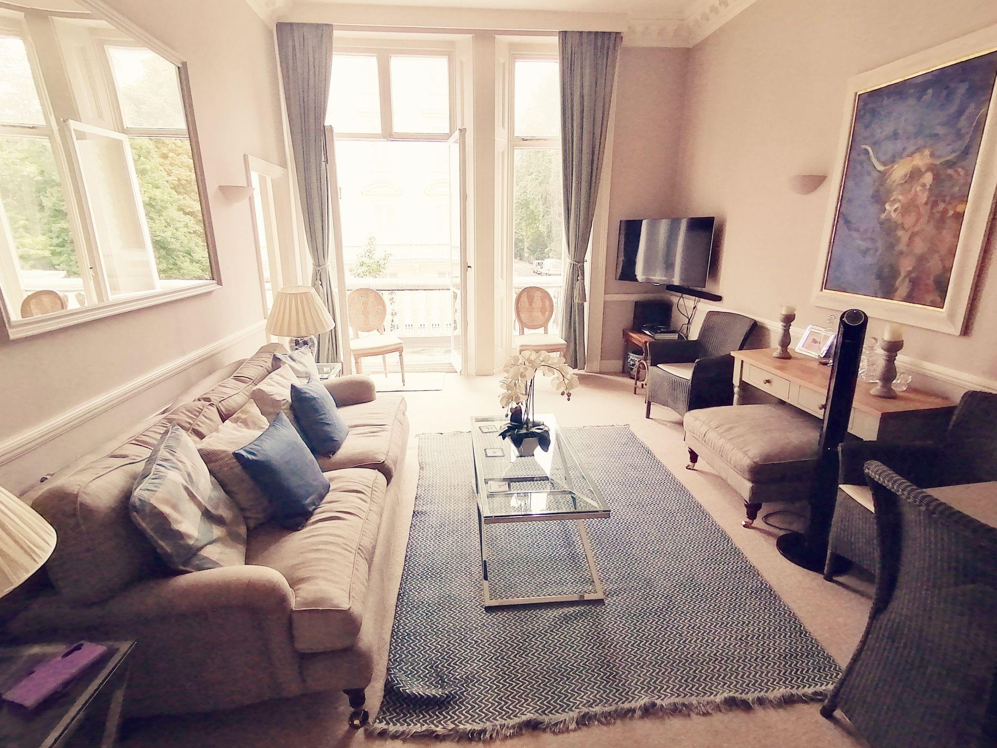Step onto the balcony for a breath of fresh air, offering a unique perspective of the city. The apartment outward view towards our award winning private gardens, this private outdoor space provides a tranquil spot to unwind after a busy day of sightseeing or meetings whilst offering a childrens play area.