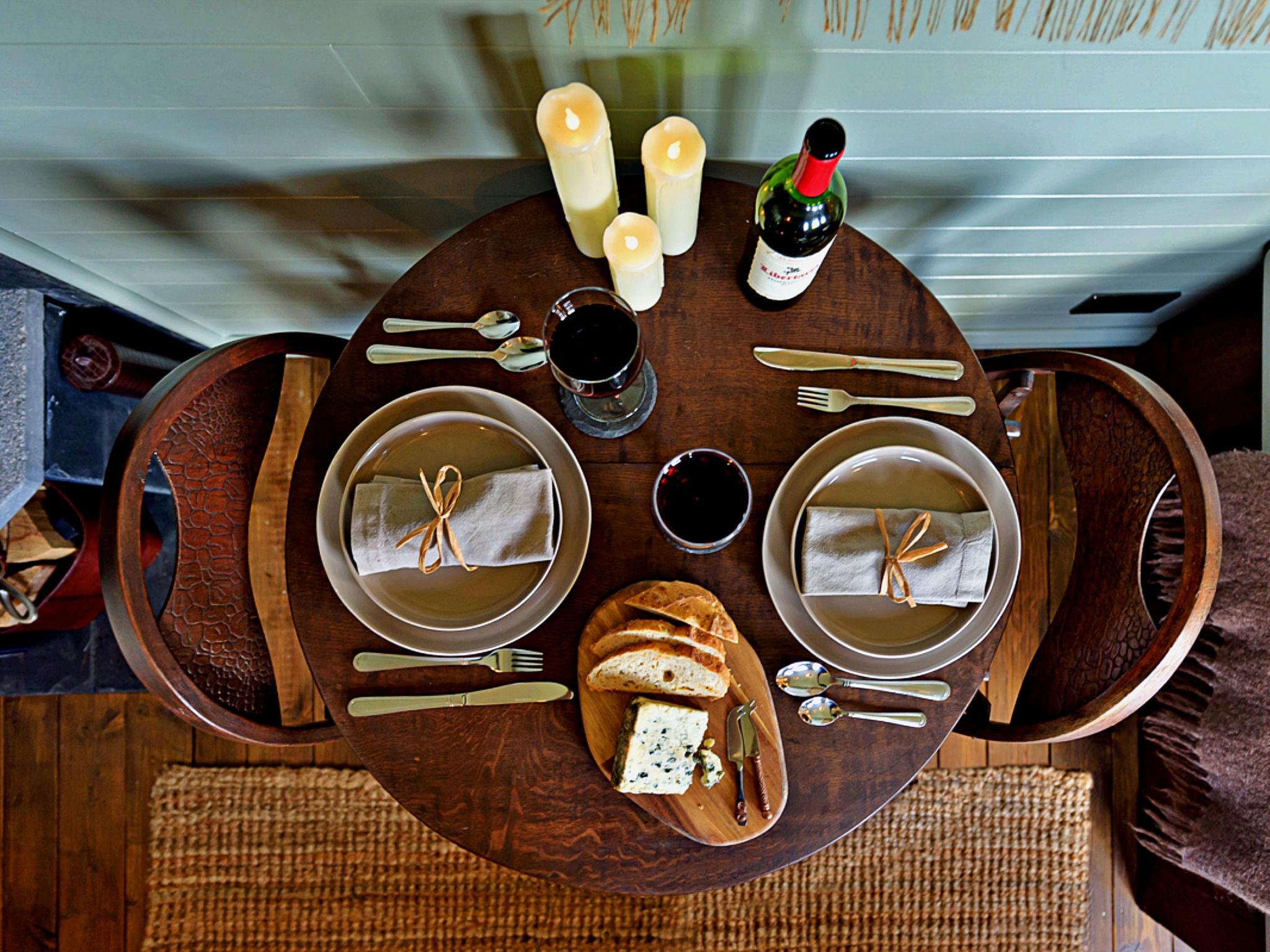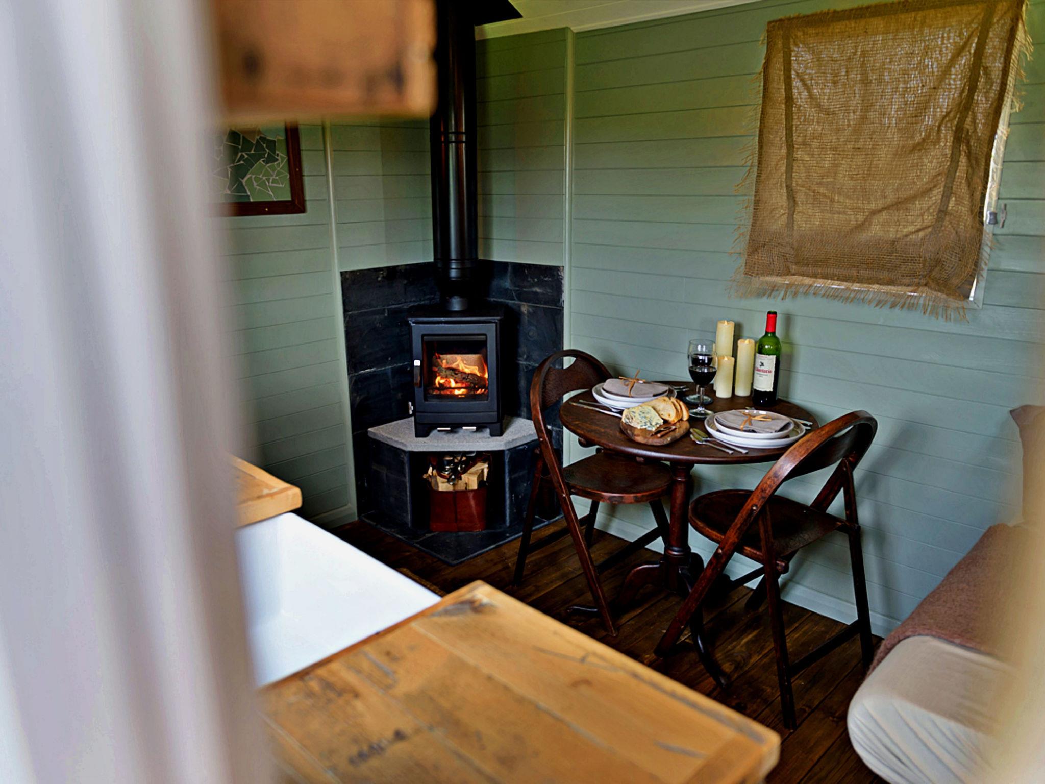 "'Joan' Shepherds Hut", 2-room chalet 30 m2. Object suitable for 2 adults. Living room with open-hearth fireplace. 1 room with 1 double bed. Kitchen (oven, toaster, kettle, freezer). Shower/WC. Barbecue. Parking (1 car). Please note: non-smokers only. 1 pet/ dog allowed.