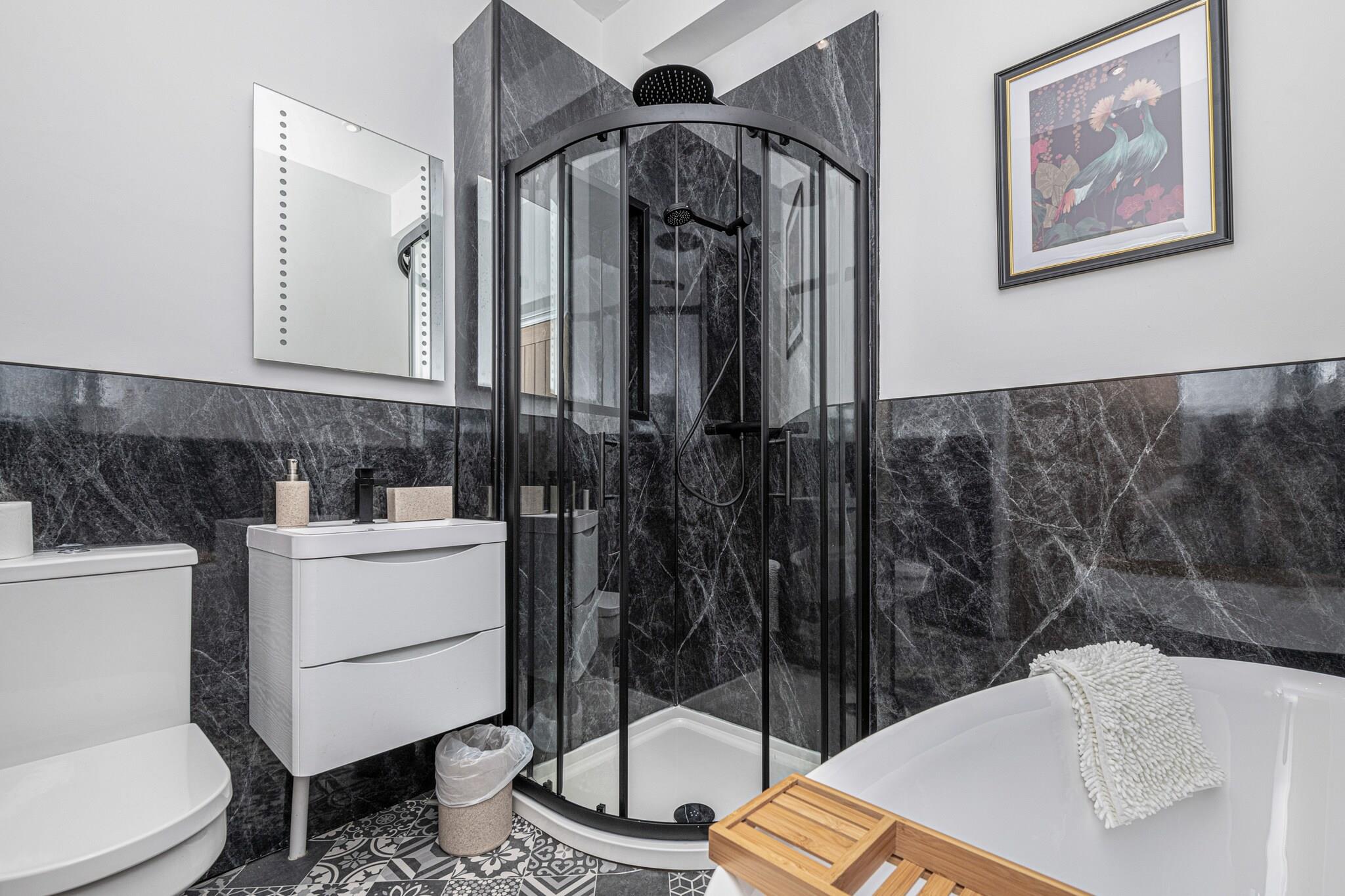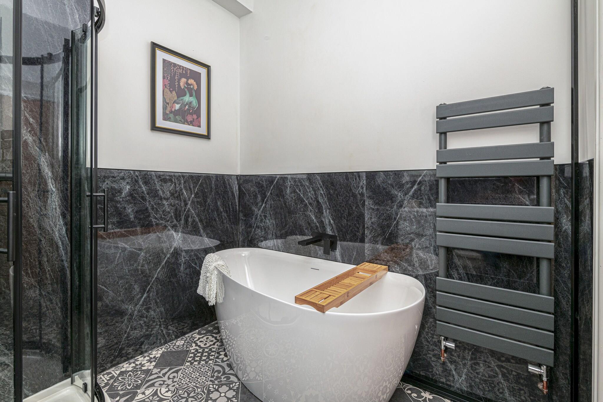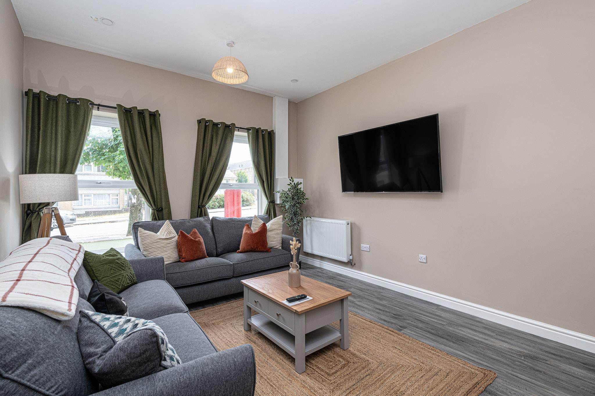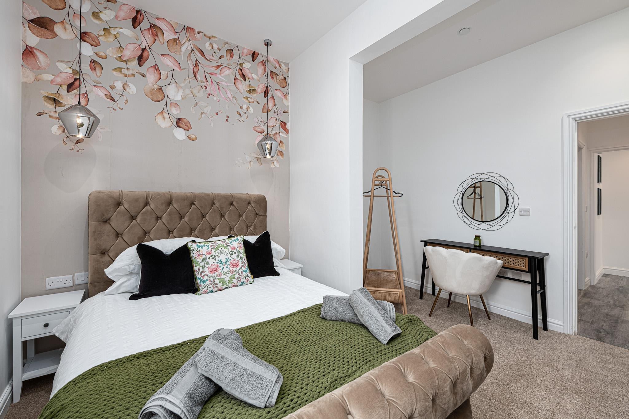Recently renovated and brand new for 2023, this modern ground-floor apartment offers a comfortable retreat for four guests in the Welsh seaside town of Pwllheli. Located just 500 meters from Blue Flag beaches, it’s ideal for couples or friends seeking a peaceful escape by the coast. Inside, the open-plan living area features a Smart TV and WiFi, while the well-equipped kitchen includes an electric oven, induction hob, microwave, coffee machine, fridge, and freezer, perfect for preparing delicious meals. Designed with comfort in mind, the apartment provides two double bedrooms and a modern family bathroom with a standalone bath, shower, WC, and basin. Step outside to explore the vibrant town, renowned for its charming streets, pubs, cafés, and shops offering local Welsh specialties such as award-winning fish and chips, ice cream, and seaside rock. The town also has three major supermarkets for self-catering needs, making it convenient for longer stays. Pwllheli, meaning 'salt-water pool,' serves as an excellent base for exploring Cardigan Bay and the Irish Sea, with opportunities for coastal cruises to spot seals, seabirds, and dolphins. Off-road private parking is available at the rear for one vehicle. For larger groups, an additional apartment can be booked under Peace Retreats Penthouse, accommodating up to 11 guests.