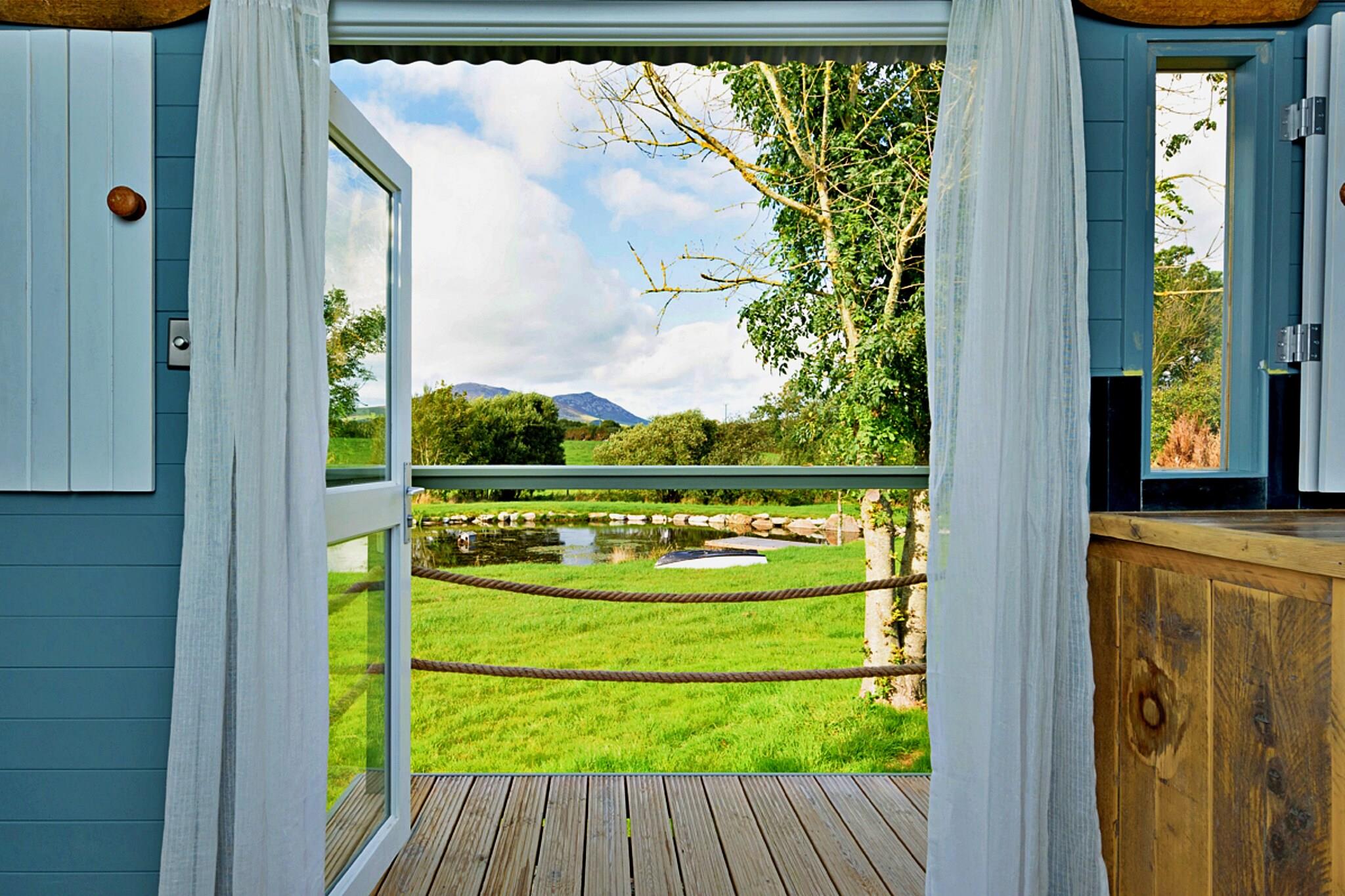 Escape to a tranquil lakeside retreat where double doors open directly onto a shimmering lake, allowing you to relax and watch the sun dance across the water as it sets. Situated on the stunning Ll?n Peninsula near the border of Snowdonia National Park in North Wales, this secluded haven offers breathtaking, uninterrupted views of the Yr Eifl (The Rivals) mountains. Just a short distance from the charming Italianesque village of Portmeirion, you’ll find the perfect balance of peace, natural beauty, and easy access to local attractions. Nestled within a wildflower meadow overlooking a private lake, this luxurious shepherd’s hut provides the ideal environment to unwind, disconnect, and reconnect with nature. The interior combines comfort and style, featuring a cozy double bed, a fully equipped kitchen with an oven, hob, fridge freezer, and Belfast sink, as well as a modern ensuite shower room with eco-friendly toiletries. Stay warm by the wood-burning stove, with logs provided, and enjoy contemporary amenities like an Anker Bluetooth speaker, towels radiator, and a fire pit with complimentary logs for outdoor cooking and relaxation. On-site, you’ll find tables and seating both inside and outside, perfect for soaking in the scenic surroundings. The five bespoke huts—each with its own character and eclectic interior design—offer a truly unique experience. With parking included behind each hut and a minimum stay of three nights, this peaceful escape provides everything you need to relax, enjoy nature, and create unforgettable memories in North Wales. Sorry, no pets allowed.