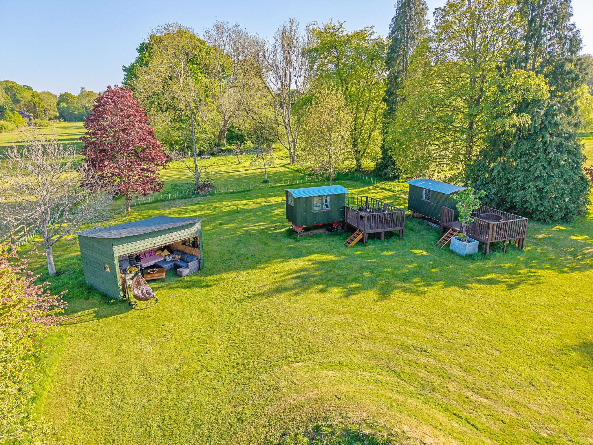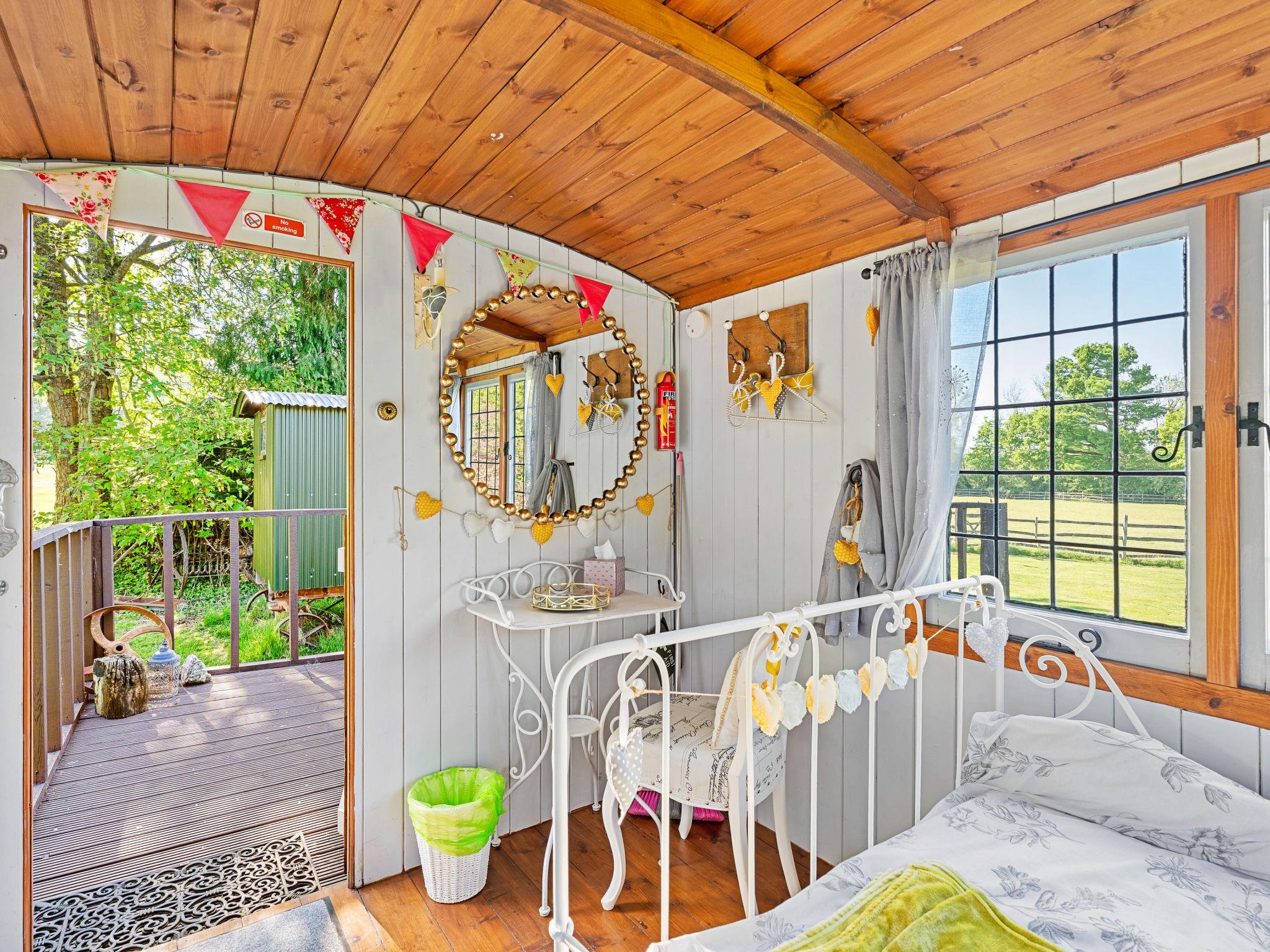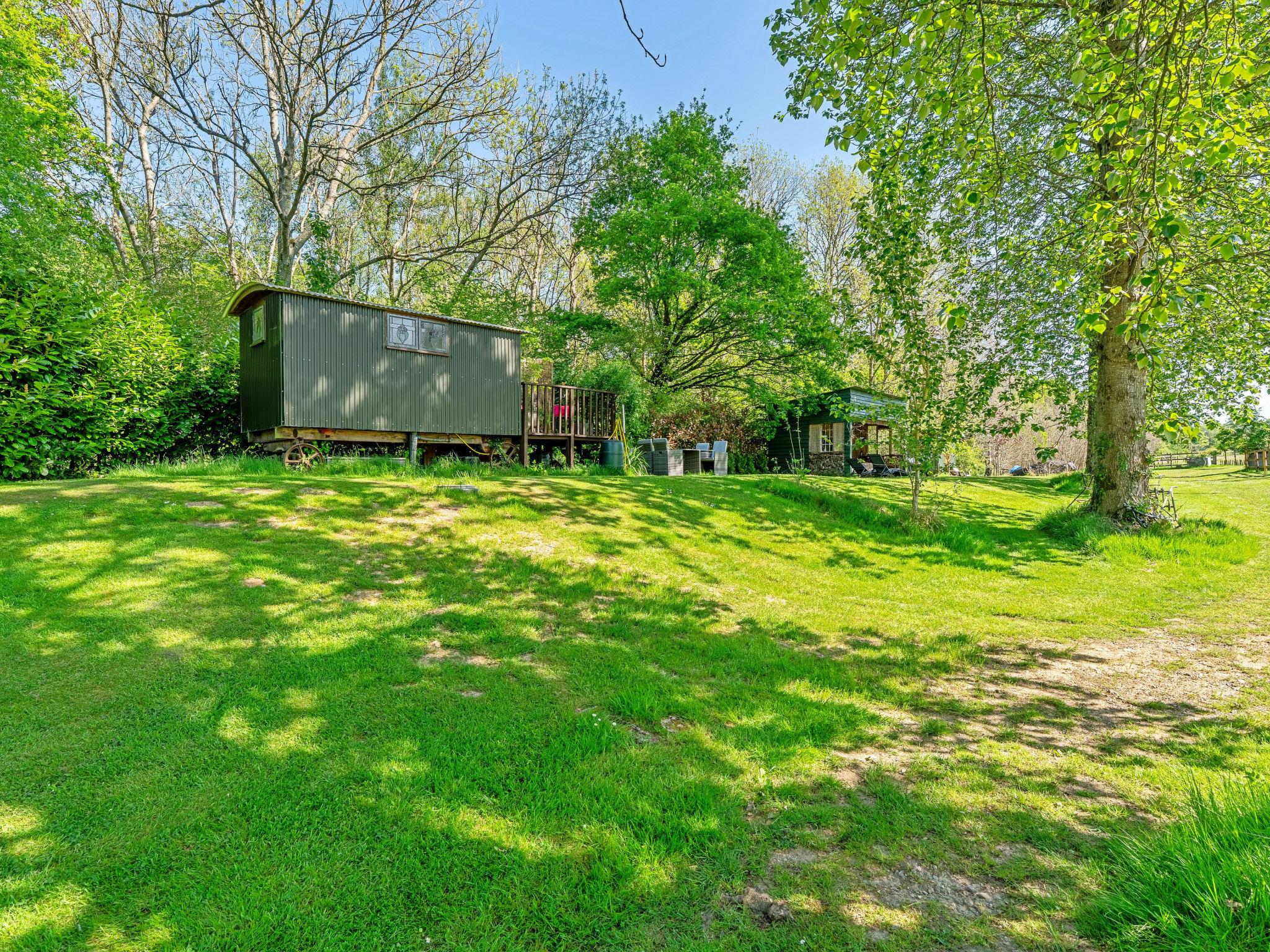 "Shepherd's Hut at Hilltop Farm", 3-room chalet 75 m2. Object suitable for 4 adults. Living room. 1 room with 1 double bed. 1 room with 1 double bed. Kitchen (kettle, microwave). Shower/WC. Parking (2 cars) at the house. Please note: non-smokers only. 1 pet/ dog allowed. Smoke alarm.