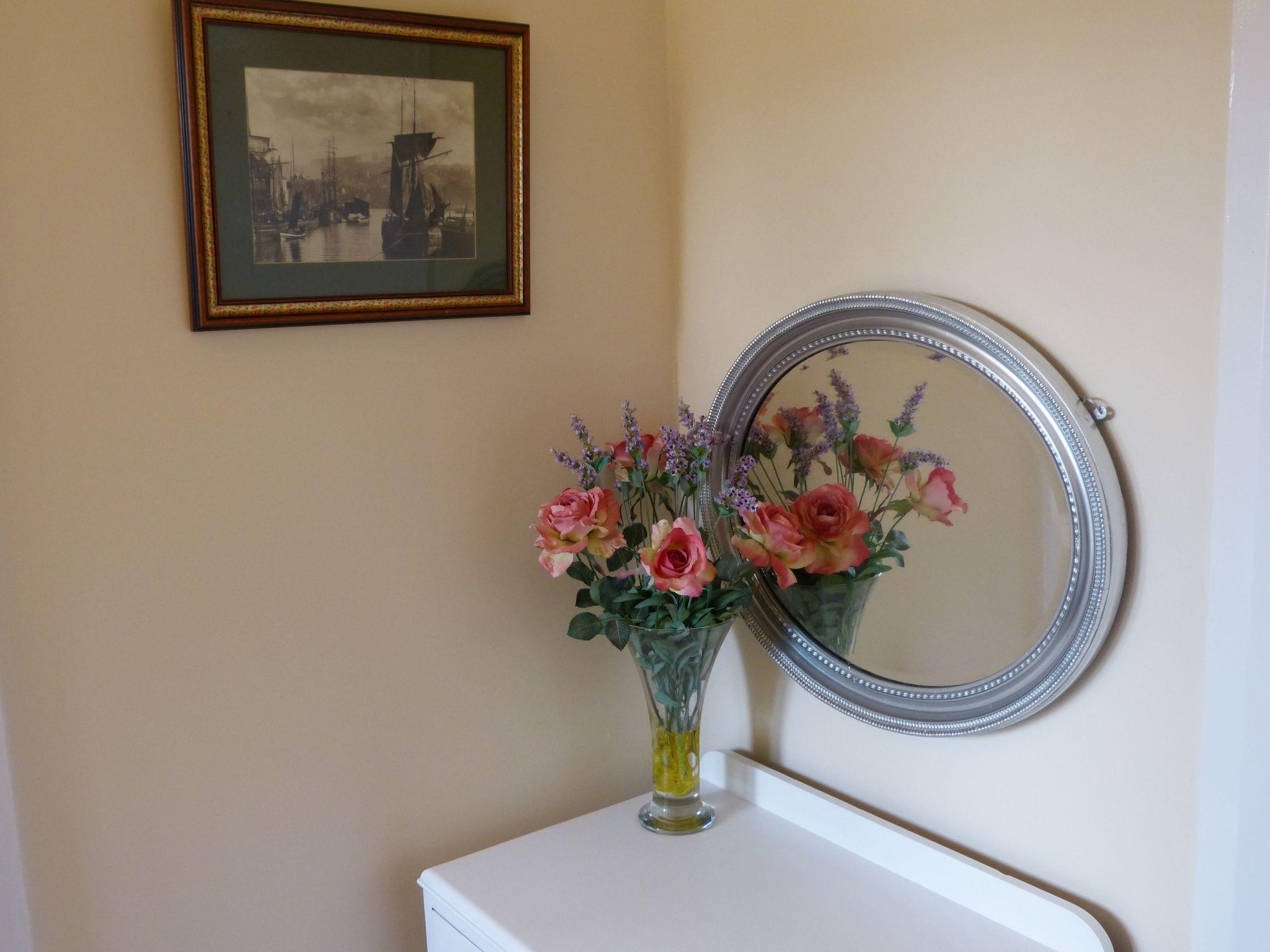There are two floors with a double and a single bedroom and a bathroom on the first floor. The double room features a four poster bed, wardrobe and chest, the single room has a period style single bed, built in wardrobe and chest. The bathroom is equipped with a bath tub with shower over, toilet and wash basin.