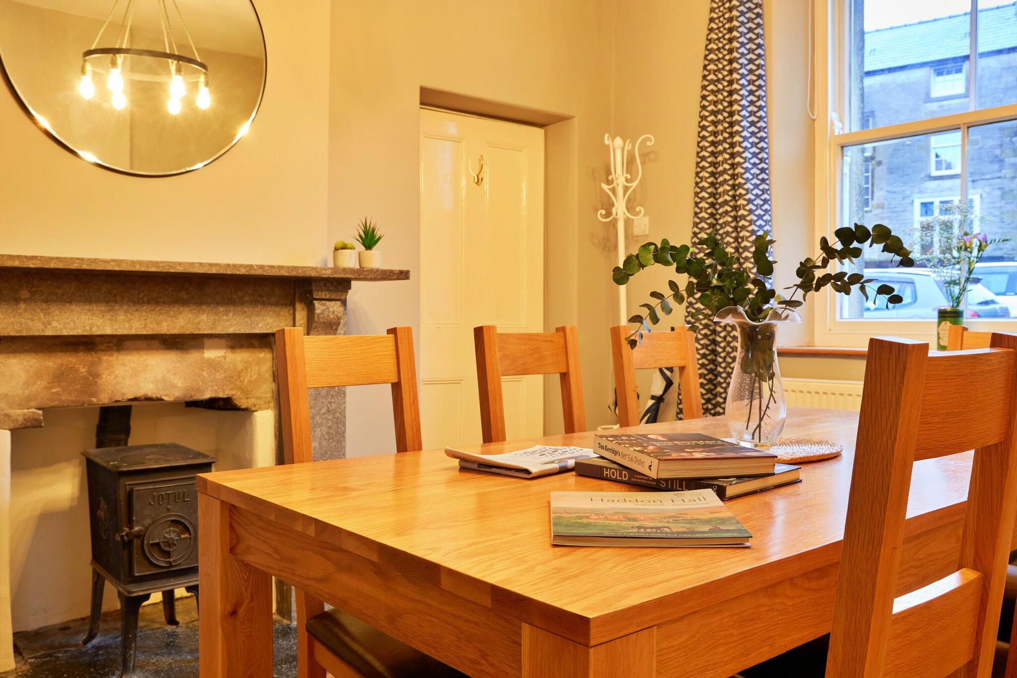 Located in the vibrant village of Tideswell within the Peak District, this beautifully renovated large house is perfect for families or groups, sleeping up to 8 guests across four spacious bedrooms. The property offers a perfect base for exploring the local amenities and the stunning surrounding countryside. Inside, the open-plan kitchen and dining area feature modern marble work surfaces, a central island, and charming exposed brick accents, blending contemporary comfort with rustic character. The fully equipped kitchen is ideal for preparing meals, while nearby restaurants and takeaways provide additional dining options. The ground floor boasts a large living room and snug area with a TV, log burner, and ample comfortable seating, creating a cozy space for relaxation, games, and family bonding. A bathroom with a shower and WC is conveniently located on this level. Upstairs, the four bedrooms include a flexible queen-size room (which can be made into two singles upon request), a king-size, a double, and a twin, accommodating various sleeping arrangements for guests. Outside, guests can enjoy the local scene, with The Star Inn offering real ales and hearty meals, and Merchants Yard serving locally sourced dishes—reservations recommended due to its popularity. The surrounding towns of Buxton, Bakewell, and Matlock are easily accessible, featuring attractions like Buxton’s Opera House, Bakewell’s famous tarts, and Matlock’s Baths. The renowned Chatsworth House is also nearby. Outdoor enthusiasts can take advantage of the Peak District’s walking and cycling routes, whether traversing Mam Tor or exploring Deep Dale Nature Reserve. The property is pet-friendly, with on-street parking and bicycle storage available. Please note, smoking is not permitted.