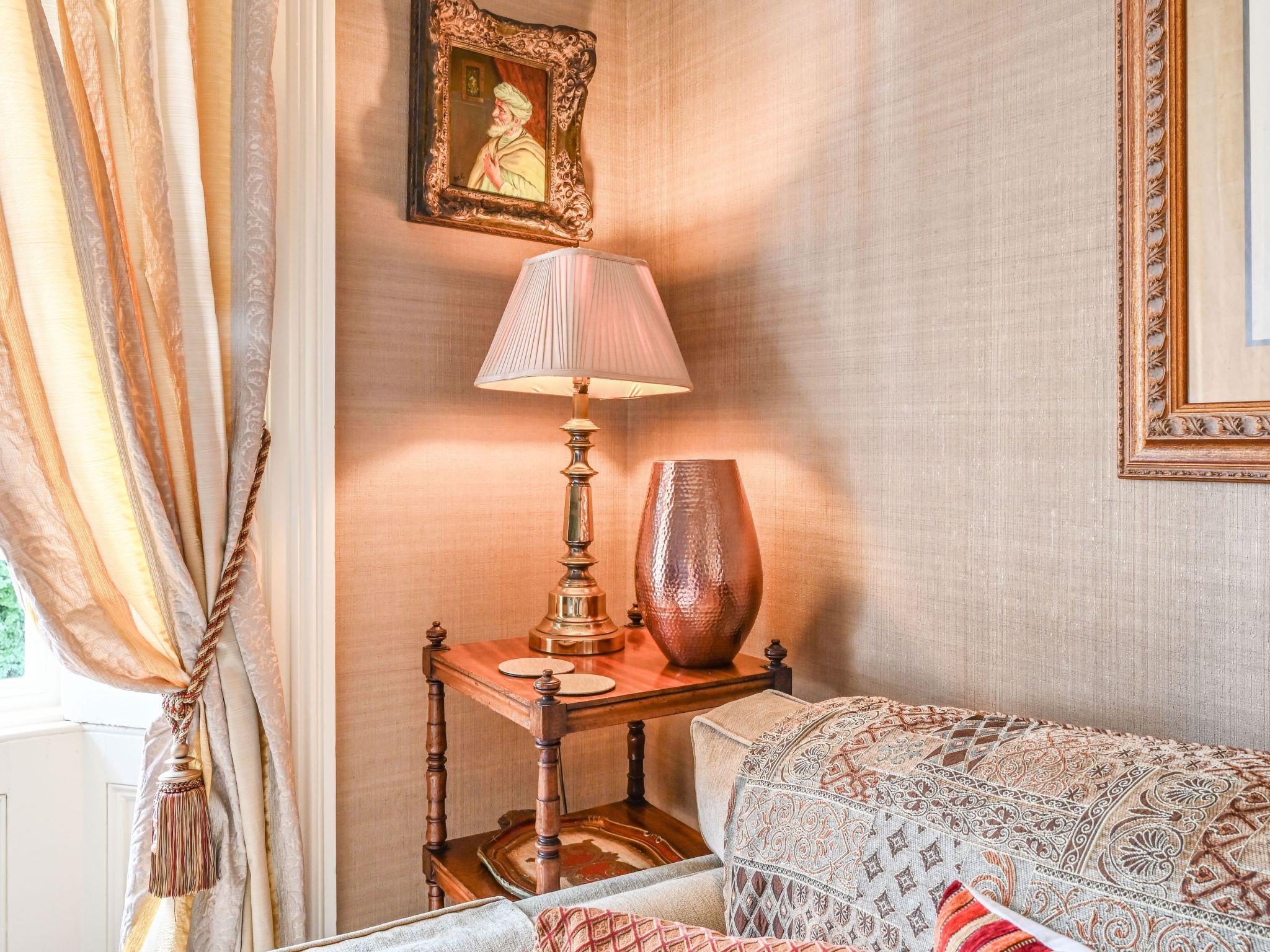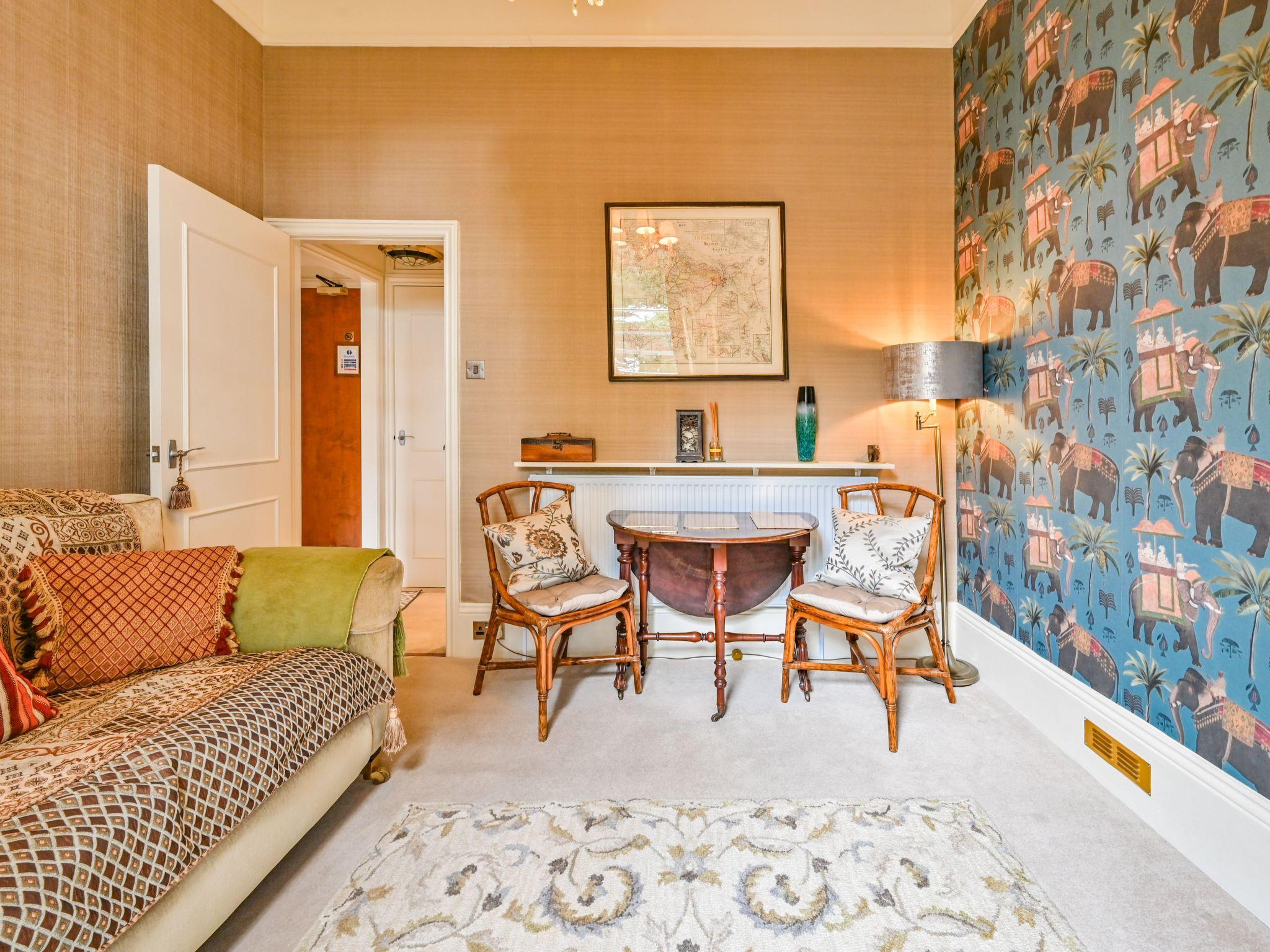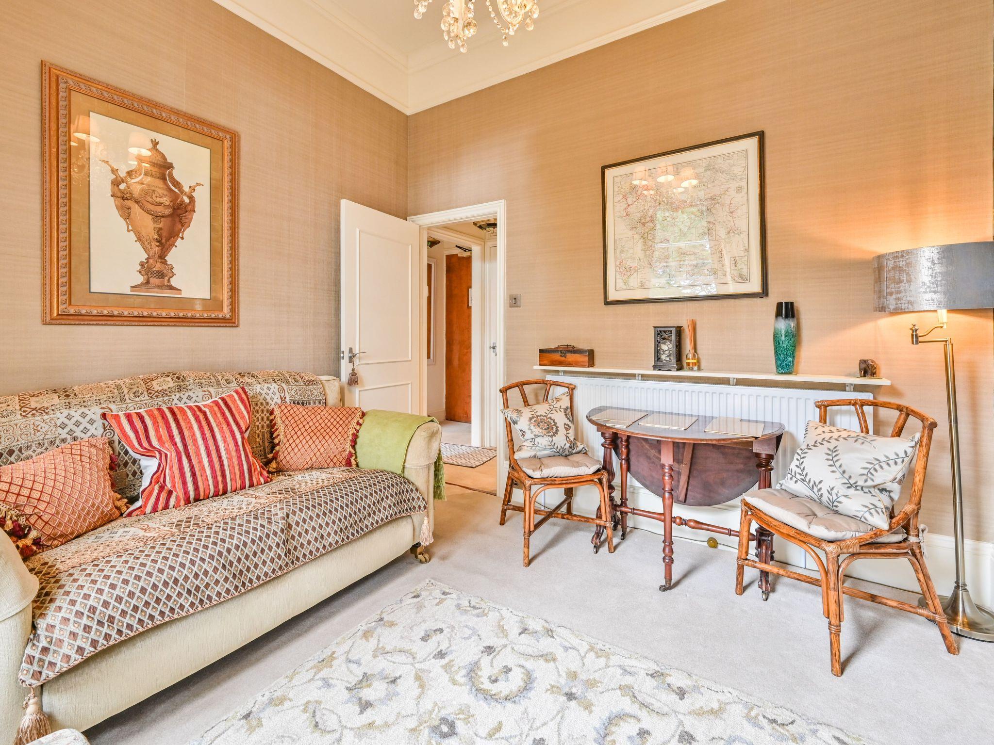 The apartment can be found on the first floor of the property and has a sitting room with sofa and armchair to relax in. There is a TV with built in DVD player and guests are welcome to borrow DVDs form the owners' own collection. In this room there is also a dining table and two chairs which can double up as work space for those guests on business. This room overlooks the Rose Garden at the side of the property. There is also a bedroom which has a super king bed (6 foot wide) which can be split into two to create two single beds. This room also has views across the Rose Garden. There is a separate hanging closet just across the hallway. Included in the apartment is also a good sized bathroom which features a bath with an electric shower over. We provide guests with a complimentary welcome pack of toiletires. Finally, there is a kitchen. This features a full sized electric stove with hob, a microwave, coffee maker and a dishwasher. We provide guests with a complimentary welcome pack of teas, coffees etc. Guests also have access to a communal laundry room which is located at garden level. Here there are coin operated washing machines and dryers. We provide guests with complimentary detergent. There are ironing facilities here too.