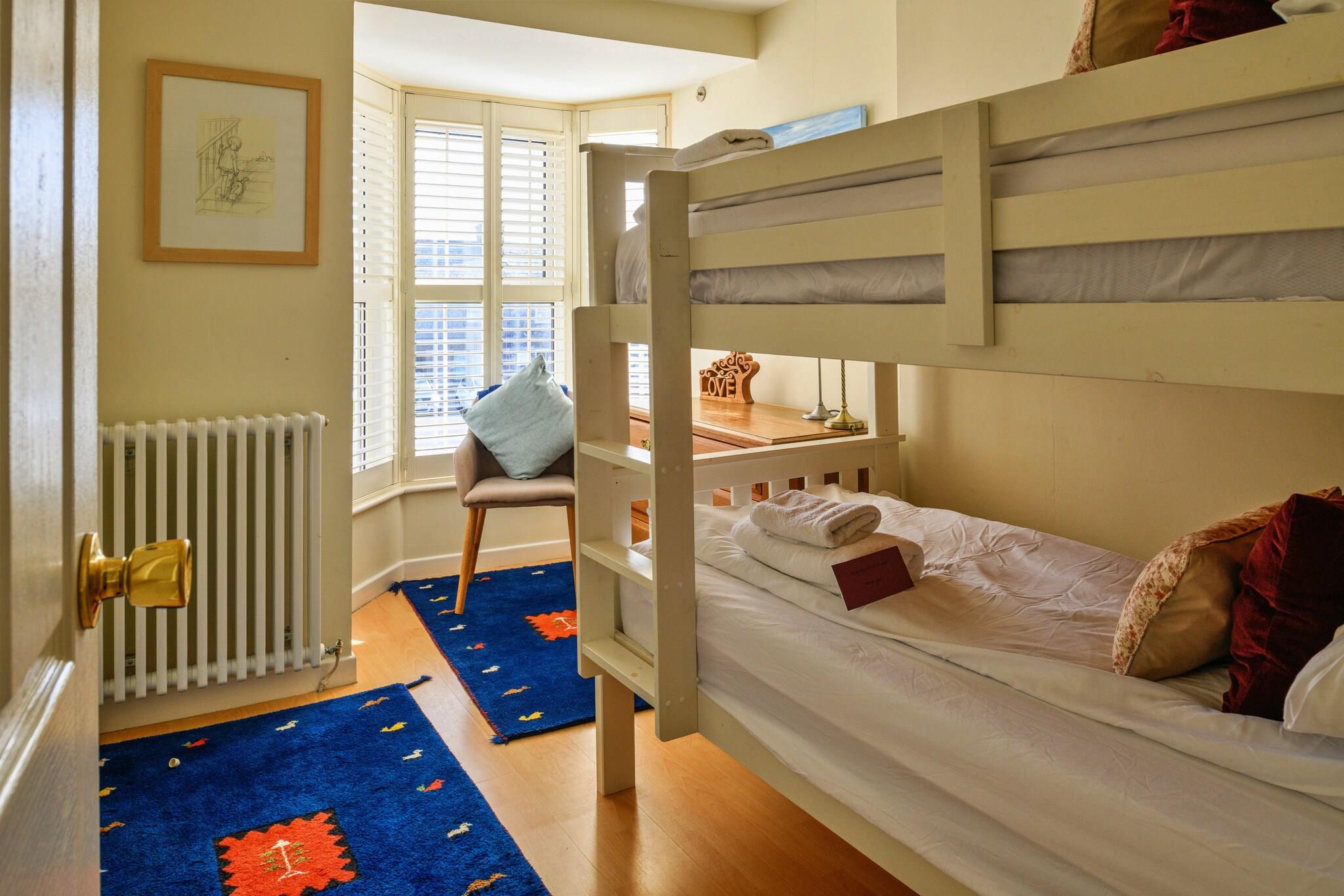 This spacious cottage in Tremadog offers a charming escape for up to 10 guests across five well-appointed bedrooms, making it ideal for families or groups. Set in a Grade II listed building, the home combines classic character with modern comforts, including a private courtyard hot tub and log burners in both the lounge and kitchen. Sleeping arrangements include a queen-sized master bedroom, three double rooms, and a bunk room—perfect for children. A small, non-shedding dog is welcome, making it a pet-friendly choice. Guests can enjoy cozy evenings by the fire or gather for meals in the 10-seater dining area. Perfectly located in Tremadog Square, the property is just a short stroll from local shops, cafes, and restaurants. It serves as an excellent base to explore nearby Porthmadog, the Snowdonia National Park, and several stunning beaches just a 15-minute drive away. The picturesque villages of Portmeirion and Harlech, with its famous castle, are also nearby. Guests can enjoy both scenic outdoor adventures and convenient local amenities, all within easy reach. Additional features include a fully equipped kitchen with a Belfast sink, a utility room with extra appliances, free on-street parking, and Wi-Fi throughout the property. Outdoors, the private courtyard offers dining space, a BBQ area, and the hot tub for relaxing evenings. The top-floor double rooms have sloped ceilings and may not suit taller guests, but the cottage overall provides a warm and inviting home-away-from-home for group getaways.