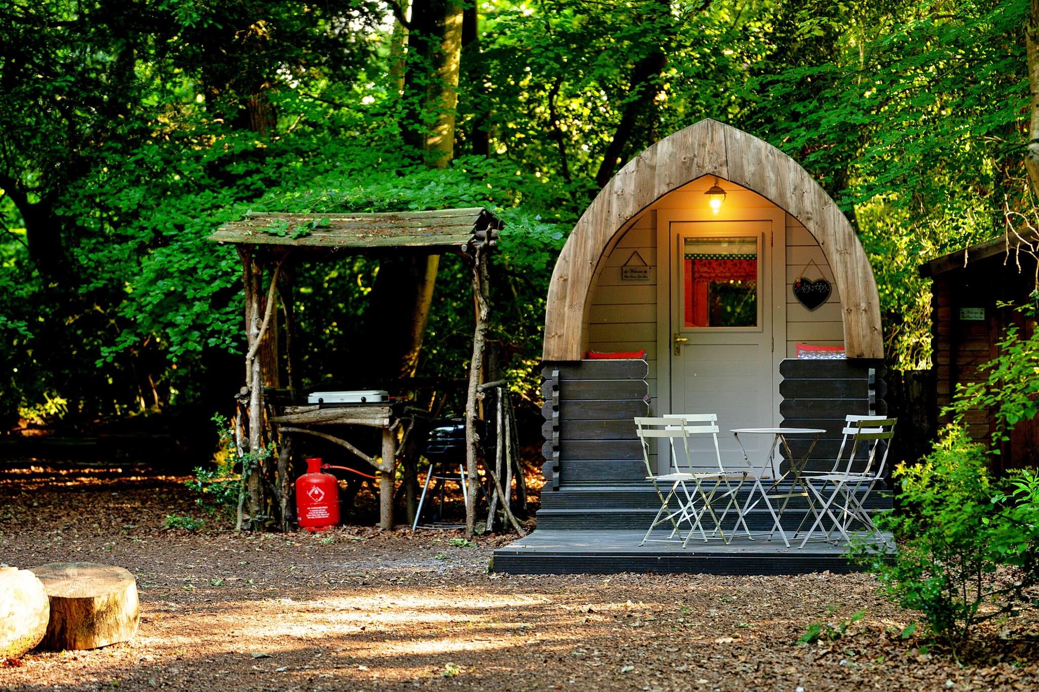 Nestled in a magical woodland clearing in southern England, this charming glamp site is perfectly located halfway between London and Bath. Set on 10 acres of private ancient woodland near historic Newbury, the cozy Daisy Pod sleeps 2 adults in a double bed and 2 children on fold-out Z-beds. It offers an ideal base for exploring or relaxing in nature. Guests have full access to the woodland, where kids can build camps, enjoy the tyre swing, and gather fallen wood for fire pits. The pod features an outside decked seating area, private toilet, hot shower, and sink. Inside, it’s equipped with electricity, heating, and a fridge, plus an outdoor cooking station with a gas stove, BBQ, crockery, cutlery, pans, tea, coffee, sugar, milk, bottled water, kettle, and toaster. All bedding and towels are included. Nearby, a communal undercover seating area and large brick firepit provide additional outdoor comfort. The nearby village of Woolton Hill offers shops, a post office, three pubs within walking distance, and a monthly market. Attractions around Newbury include Highclere Castle (Downton Abbey), 4 Kingdoms Adventure Farm Park, The Chase nature reserve, Newbury Racecourse, museums, and canal boat trips to Hungerford. Surrounded by scenic walks and cycling trails, there’s plenty to enjoy outdoors without needing to drive. Please note free-roaming birds and dogs may approach. Guests should bring their own wood, charcoal, and tea lights.