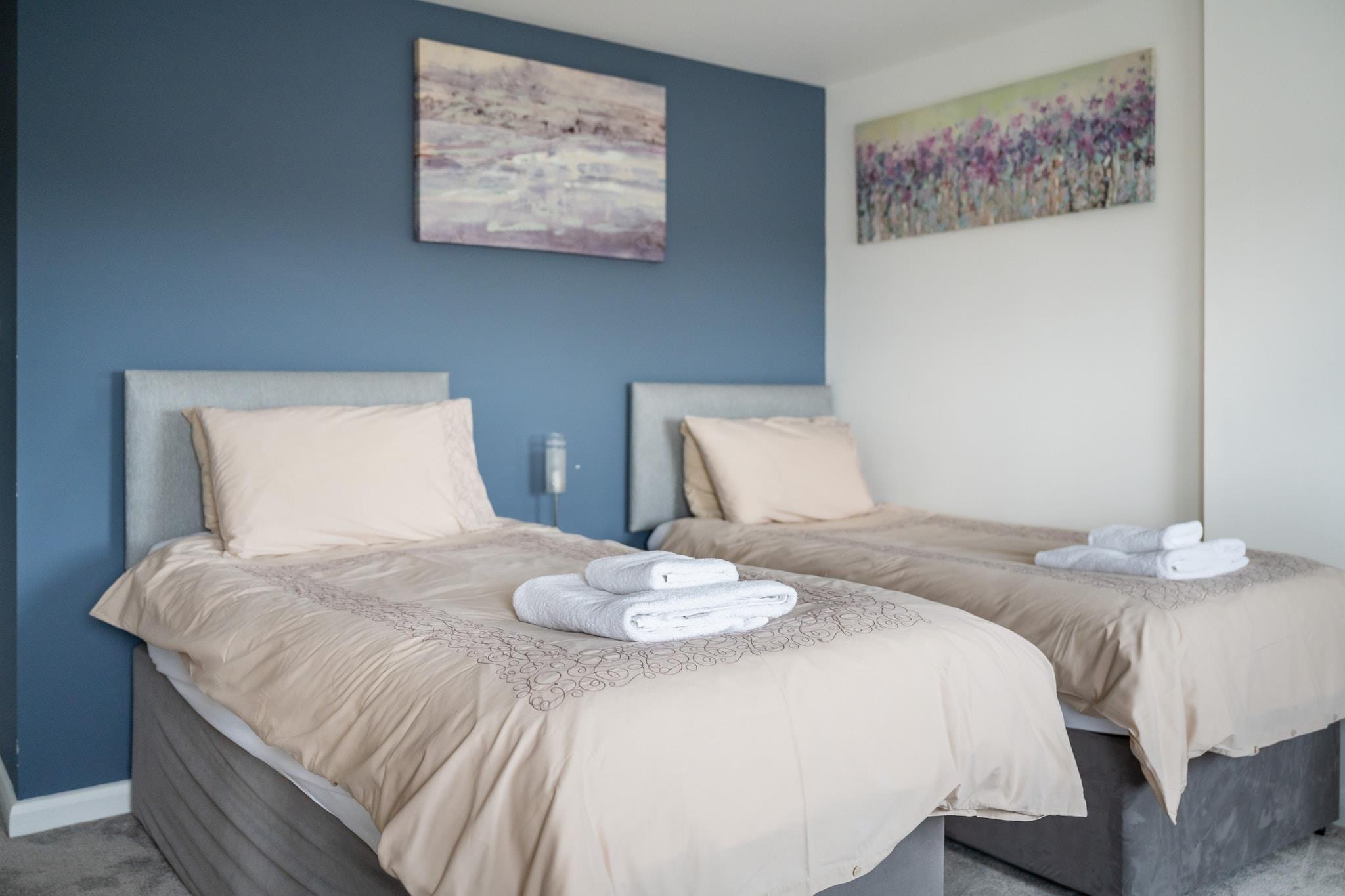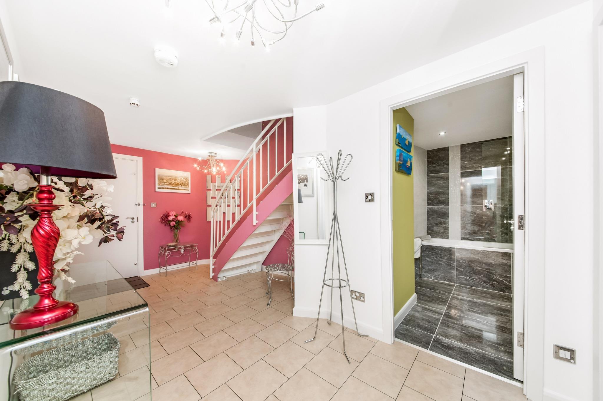 Discover the exquisite penthouse suite at 611 Westgate, ideally located in the heart of York, where history meets modern luxury. With captivating balcony views of the city's stunning skyline and the tranquil River Ouse, this stylish retreat promises an unforgettable escape. Just a short stroll from York train station, you'll find yourself immersed in the vibrant atmosphere, surrounded by charming shops and iconic attractions. This chic and contemporary penthouse apartment is designed for comfort and convenience, featuring a fully equipped kitchen with a Neff oven and an American-style fridge/freezer, ensuring a delightful self-catering experience. Spanning two levels, the upper floor showcases a spacious open-plan living, kitchen, and dining area that maximizes those breathtaking views. Stay connected with complimentary Wi-Fi and enjoy your favorite shows on BT TV. Step outside to the expansive private terrace, furnished with a table and chairs perfect for al fresco dining while savoring the picturesque surroundings. On the lower level, two elegantly appointed bedrooms await: a luxurious super king-size bedroom with an ensuite double shower, and a second bedroom featuring twin beds, accompanied by a family bathroom with a shower over the bath. Please note the following when booking: - Secure private underground parking for one vehicle is included. - The property is not suitable for children under 12. - Fresh towels, linens, and tea towels are provided. - Access is easy with a lift to the 6th floor. - A meet and greet service is available, with check-in between 3pm - 6pm. - Kindly refrain from booking for stag/hen parties, large groups, or events.